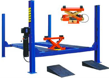 汽修專用舉升機(jī)屬于一種特殊液壓升降機(jī),有剪叉式、雙柱式、四柱式、另外有對(duì)稱式和非對(duì)稱式區(qū)分。對(duì)稱式舉升機(jī)四根臂的臂長(zhǎng)大致相等,這樣使得汽車中心(或質(zhì)心)處于立柱的中間位置,對(duì)于皮卡和箱式貨車等類型的汽車的日常維修來(lái)說(shuō)這種對(duì)稱式舉升機(jī)可能是最佳的選擇。但是對(duì)于一些柱間寬度不夠大的對(duì)稱式雙柱式舉升機(jī)來(lái)說(shuō),汽車舉升后不能打開(kāi)車門是一個(gè)很大的缺點(diǎn)。非對(duì)稱式舉升機(jī)的立柱向后旋轉(zhuǎn)了一個(gè)角度(大約30°),并且前臂比后臂稍微短一些。當(dāng)把汽車停放到這種非對(duì)稱式的舉升機(jī)適當(dāng)位置時(shí),車的位置就向后移動(dòng)了一些,因此,我們就很容易地從車門進(jìn)出。而且,這種非對(duì)稱式舉升機(jī)轉(zhuǎn)動(dòng)的立柱,可以確保車輛的重心安全地定位在立柱之間。